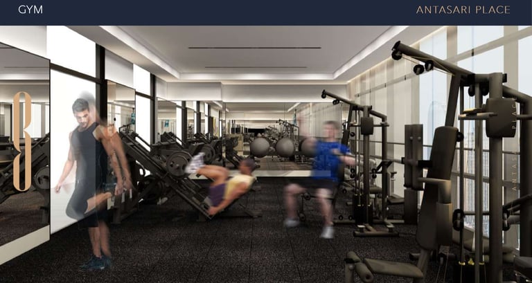 Fasilitas gym lengkap untuk menjaga kebugaran dan kesehatan penghuni.